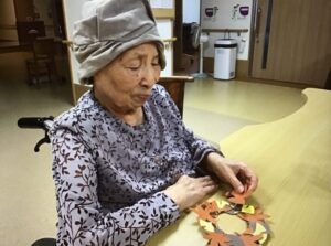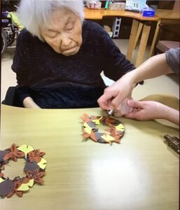 職員と一緒にキラキラ🌟も付けて出來上がり!!🍂