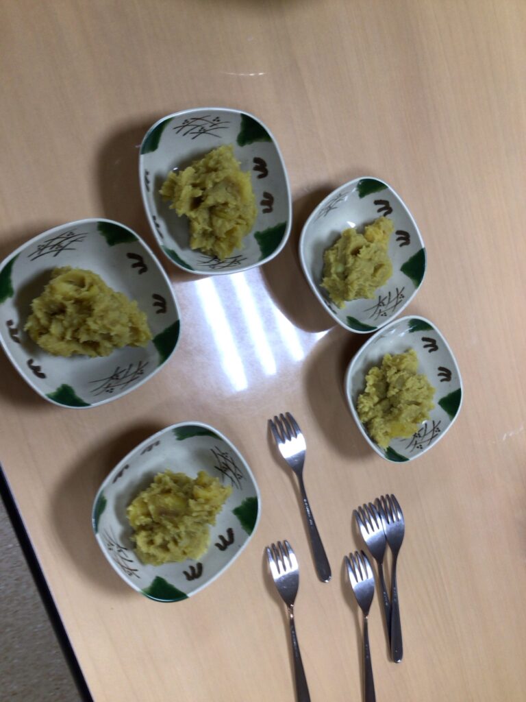のうね、へいしょうフロアでは栗きんとん作りを行いました。