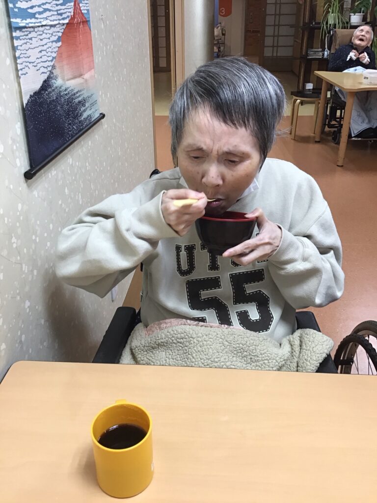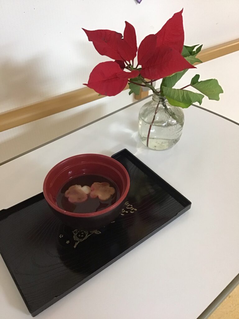 早いものでもう鏡開きです。お餅は入れられないけど代わりに花麩を入れて、おしるこをみんなで頂きました😊