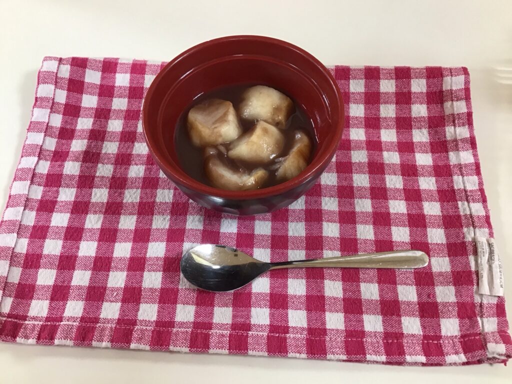 食べやすい様に一口サイズに切ってもらい、餡子を混ぜてもらいました( ^∀^)