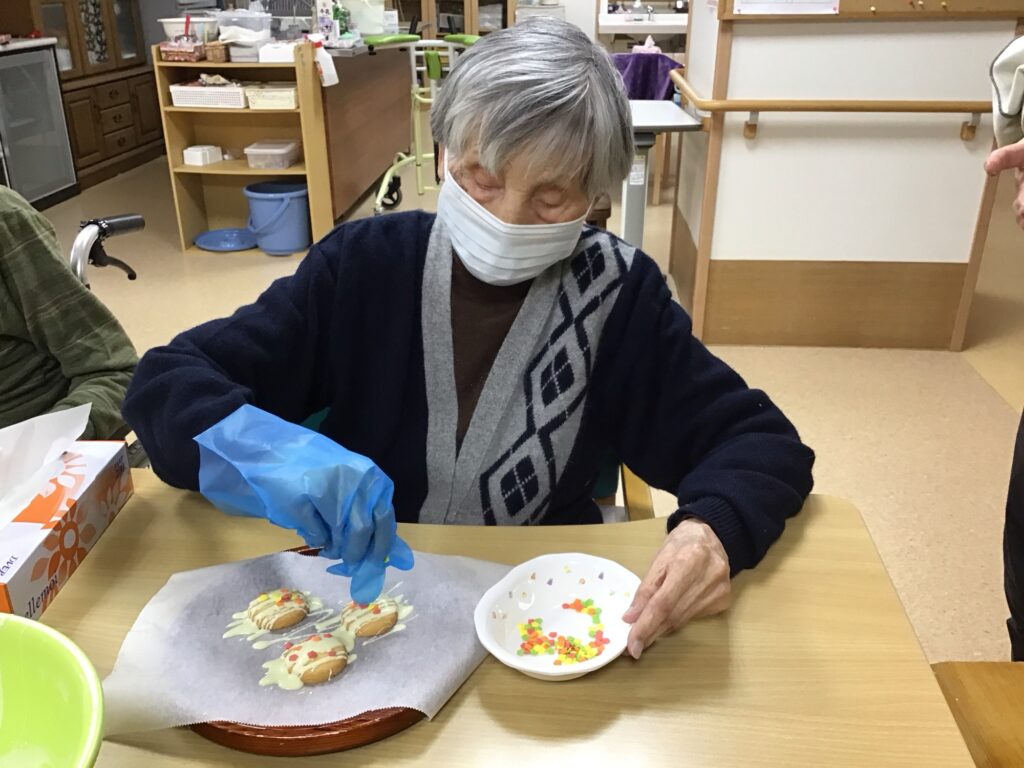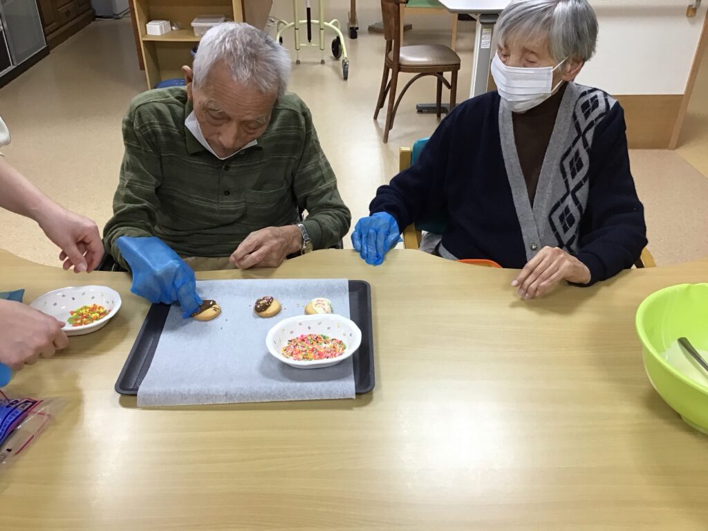 クッキーに溶かしたチョコを掛けて、その上からトッピングをしてもらいました!