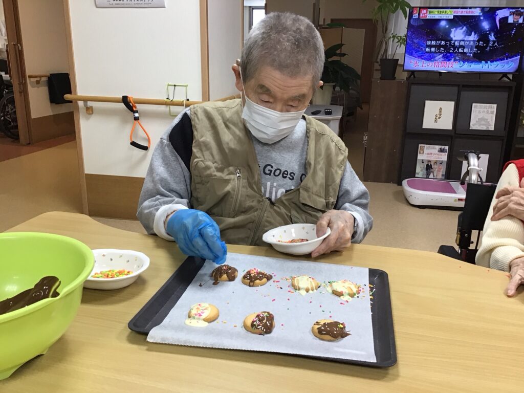 バレンタインデーが近かったので、めいしょうではチョコレートを使っておやつ作りをしました。