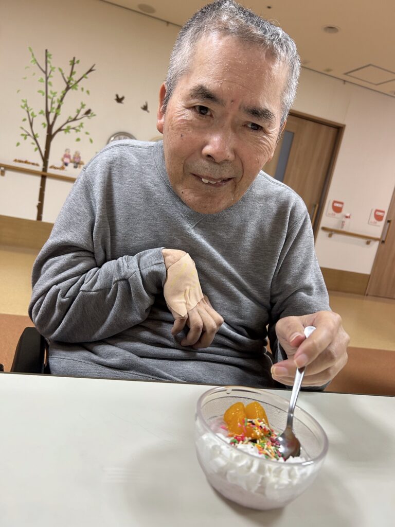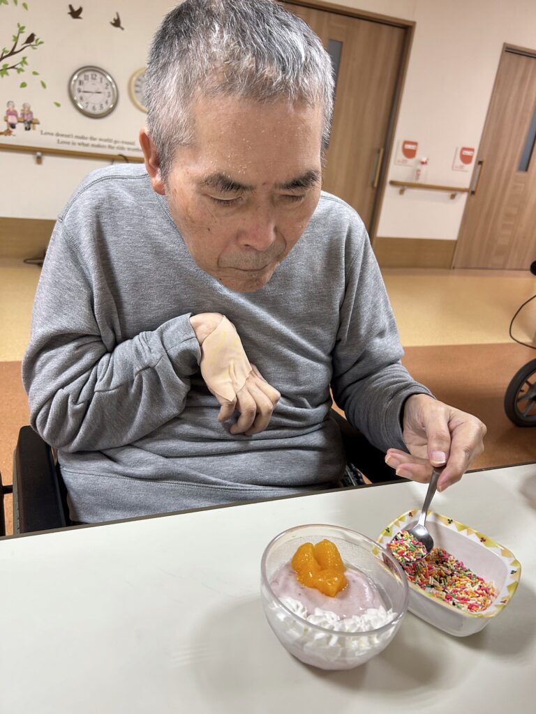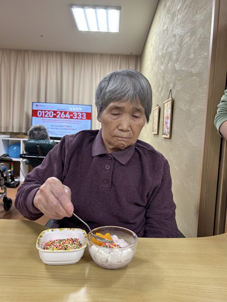 カラプルで可愛いデザートが完成し、「美味しい!!」と笑顔が見られた。